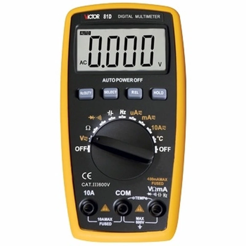 Digitalni multimetar s automatskim rasponom Victor 81D osnovni je alat za tehničare i hobiste u elektronici koji traže preciznost i svestranost u mjerenjima. Ovaj multimetar ima robusnu izvedbu i napredne funkcije koje olakšavaju mjerenje različitih električnih i elektroničkih parametara.