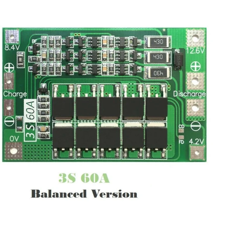 Ova zaštitna ploča namijenjena je litijskim baterijama u konfiguraciji 3S (tri ćelije serijski), s maksimalnom kontinuiranom strujom pražnjenja od 60A i funkcijom balansiranog punjenja. Idealno je rješenje za zaštitu i optimizaciju performansi baterija tipa 18650, 26650 i litij-polimernih baterija.