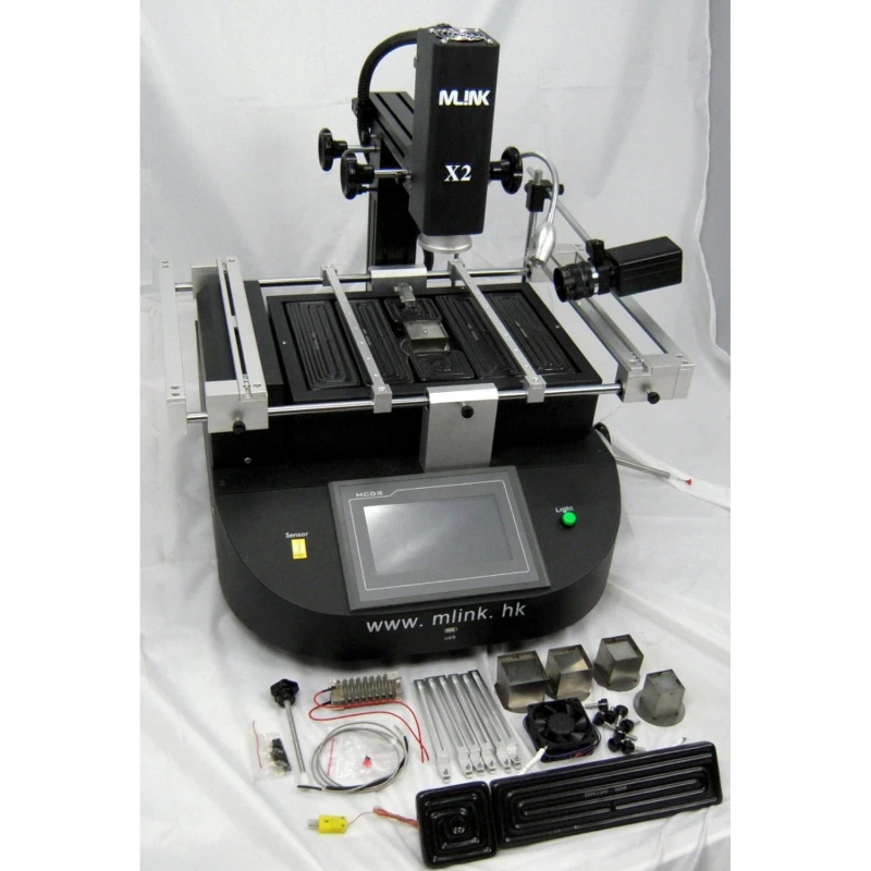 Estación Mlink X2 se ističe linearnim kliznim sustavom na osima X, Y i Z, što omogućuje precizno podešavanje i brzo pozicioniranje. Uključuje HD zaslon osjetljiv na dodir za intuitivno upravljanje, upravljanje profilima i zaštitu lozinkom. Nudi tri neovisne zone grijanja s finom kontrolom temperature (tolerancija ±3 °C) i trenutnom analizom toplinske krivulje, čime poboljšava ponovljivost i omogućuje prilagodbu procesa prema komponenti. U usporedbi s alternativama, obično olakšava brze izmjene mlaznica i podešavanja grijanja, optimizirajući vrijeme i smanjujući pogreške pri rukovanju.
