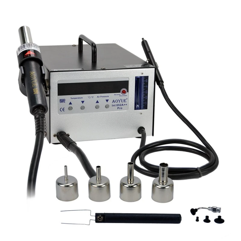 Digitalna stanica za lemljenje vrućim zrakom Aoyue 852A++ profesionalni je alat dizajniran za preciznost i pouzdanost u radovima lemljenja i popravaka elektronike. Napredna tehnologija uključuje automatsku kontrolu protoka zraka i pametni toplinski stabilizator koji osigurava stalne i sigurne performanse.