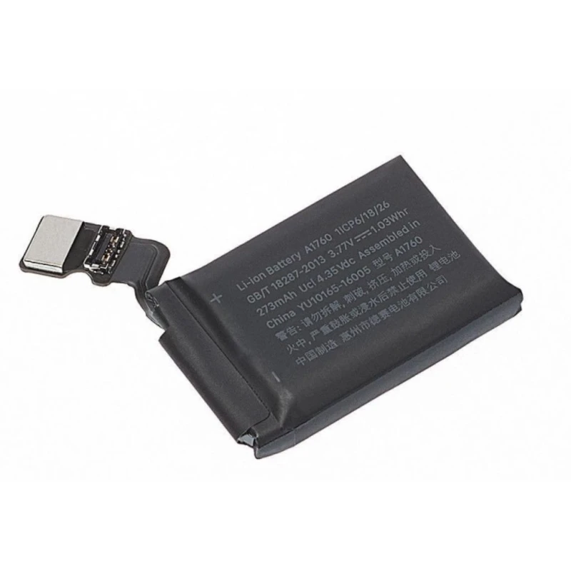 bateria apple watch serie 2 38mm 273mAh A1760 je interna zamjenska baterija posebno dizajnirana za Apple Watch Serie 2 od 38mm. Ova visokokvalitetna baterija jamči dugotrajnost i optimalne performanse, omogućujući da vaš sat radi dulje bez potrebe za čestim punjenjem.