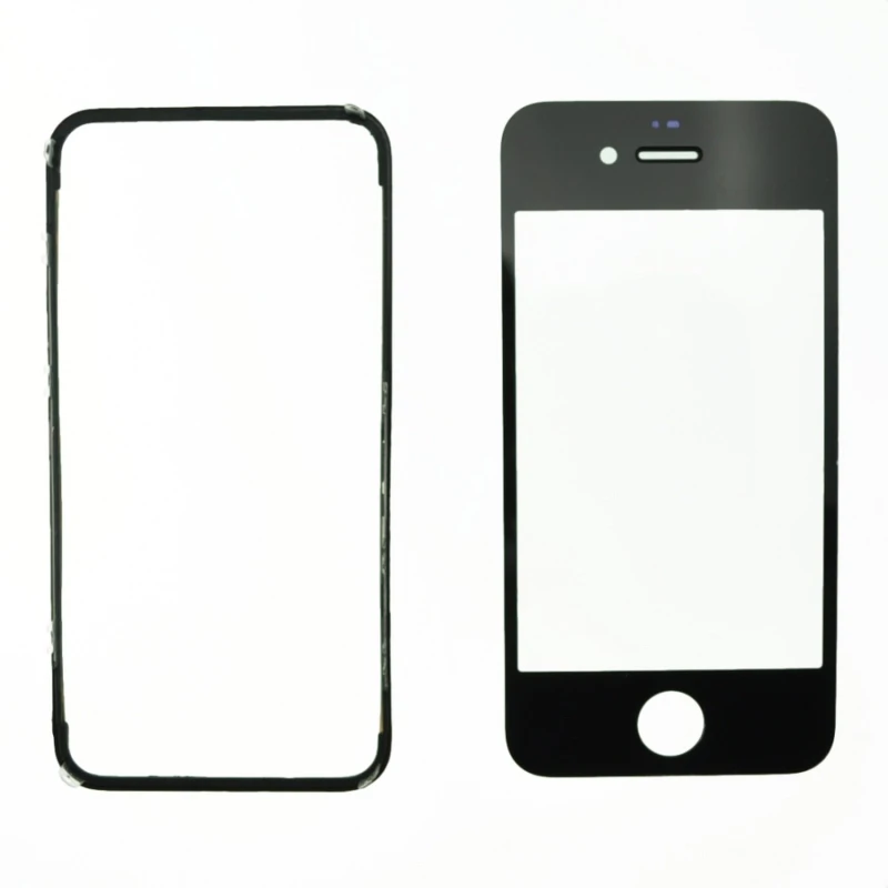 - Crno staklo zaslona za iPhone 4S s uključenim ljepljivim okvirom